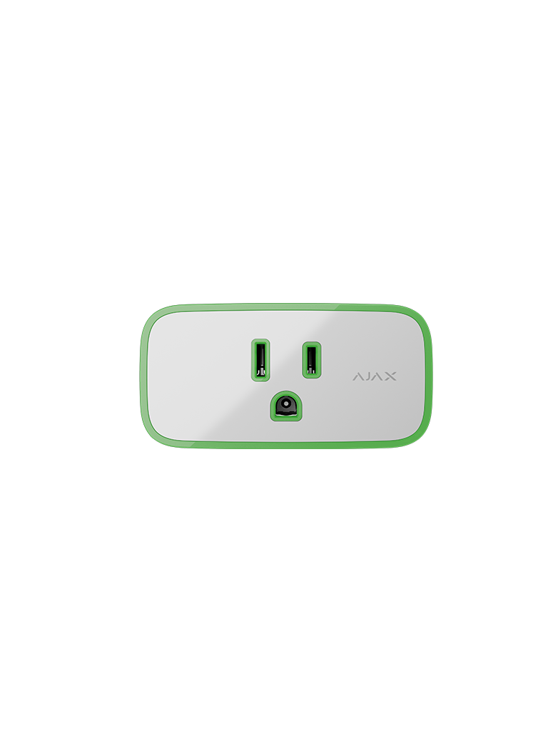 El enchufe inteligente controla la alimentación de los electrodomésticos conectados a este, con una capacidad de carga de hasta 1.8 kW. Puede gestionarse mediante la app Ajax, los escenarios de automatización, pulsando el botón de control en la carcasa del enchufe, el Button o el interruptor inteligente LightSwitch.