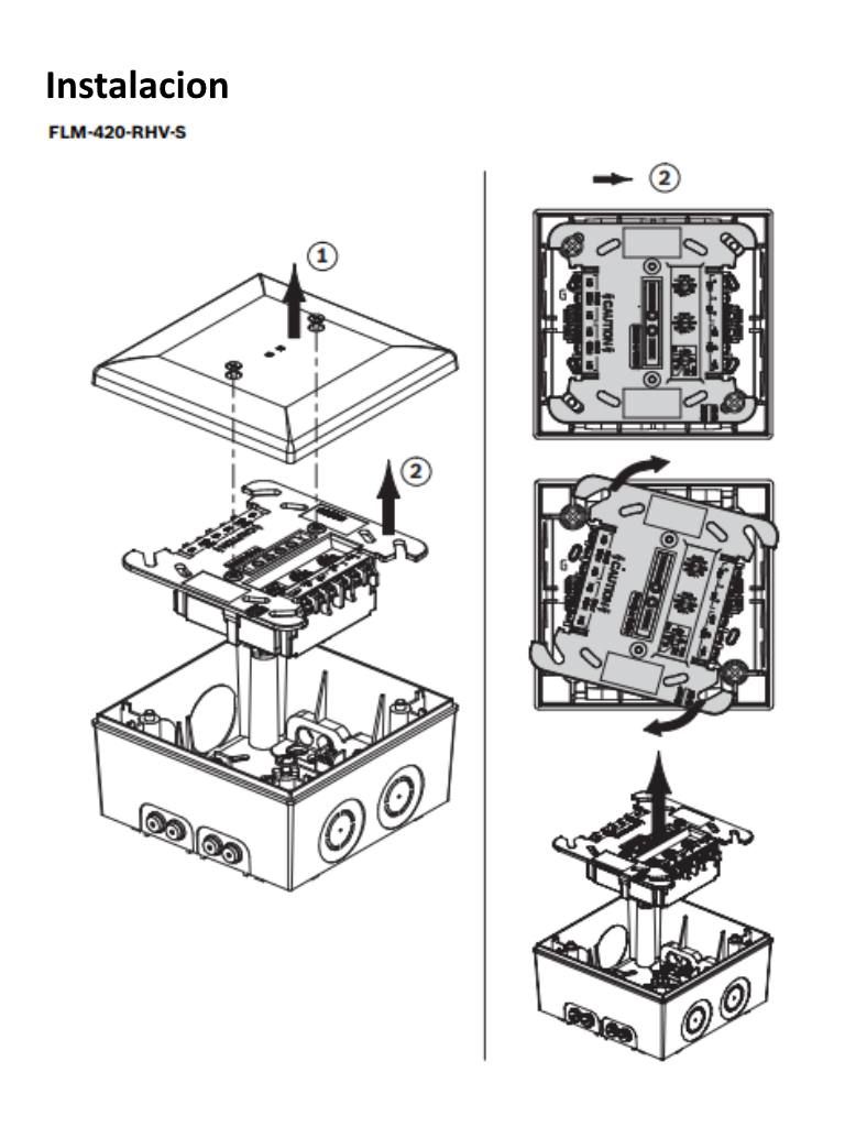 - FLM‑420‑RHV‑S para montaje en superficie con carcasa.