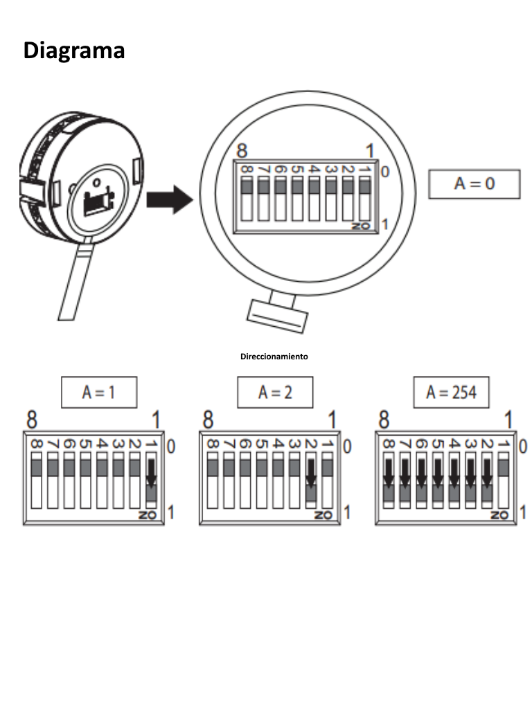 - Conmutadores DIP para FLM‑420‑RLV1‑E.