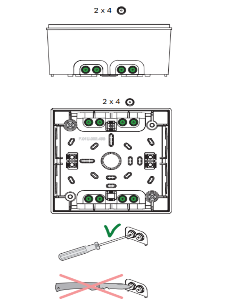 Además, hay conductos para cables en la base de la carcasa para montaje en superficie: