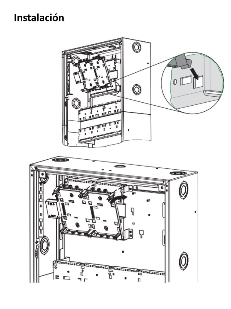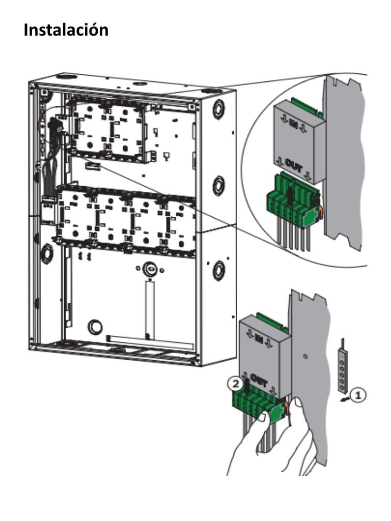 El raíl de central corto y el raíl de central largo son elementos plug-and-play fabricados con plástico reforzado con fibra de vidrio para dos o cuatro módulos. La alimentación para ambos módulos y todo el flujo de datos entre el módulo y el panel de control se consiguen mediante los contactos de los enchufes del raíl.
