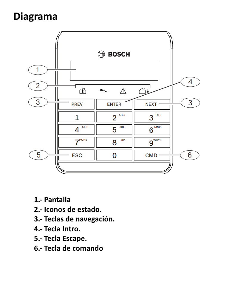 El teclado utiliza símbolos, números y palabras para mostrar el estado del sistema de seguridad. Cuando se produce más de un evento, el teclado muestra cada evento por orden de prioridad.