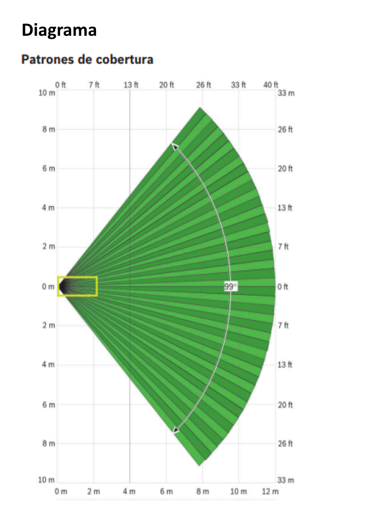 Una zona de ángulo cero y un alcance de cobertura de 12 x 12 m (40 x 40 pies) brindan cobertura de pared a pared.