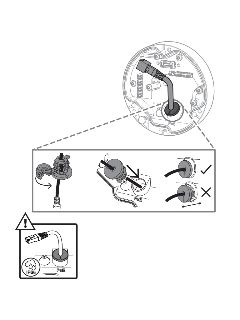 Se puede suministrar alimentación a través de Ethernet (PoE). Con esta configuración, solo se necesita una única conexión del cable para ver, alimentar y controlar la cámara. El uso de alimentación por Ethernet o PoE facilita la instalación y la hace más rentable, ya que las cámaras no necesitan una fuente de alimentación local.