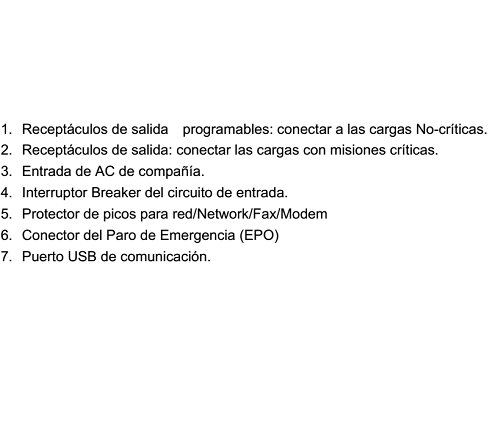 Bancos de toma corrientes aislados. Permiten al usuario la asignación de los toma corrientes dependiendo del tipo de aplicación, dependiendo si esta es muy crítica o crítica. Esto previene sobre apagados accidentales del UPS que pudieran afectar a las cargas mas sensibles.