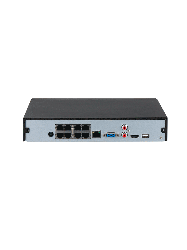 Tiene 8 puertos PoE integrados, lo que permite conectar hasta 8 cámaras IP directamente sin necesidad de un switch PoE adicional.