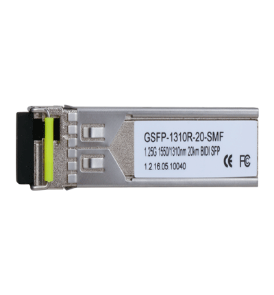 El Dahua GSFP1310R20SMF es un módulo SFP de fibra óptica monomodo con transmisión bidireccional, diseñado para enlaces de hasta 20 km de distancia. Utiliza un conector LC y opera con TX 1550 nm y RX 1310 nm, proporcionando una comunicación estable y de alta velocidad. Es ideal para redes de telecomunicaciones, videovigilancia y sistemas de datos que requieren una transmisión confiable a larga distancia. Su diseño compacto y eficiencia en el uso de la fibra lo hacen una excelente opción para optimizar infraestructuras de red con mínima pérdida de señal.