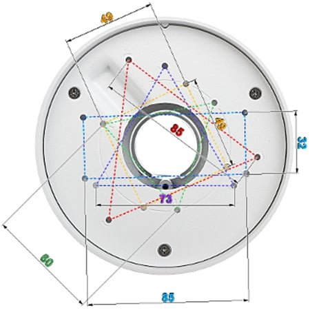 El PFA106 es un montaje para cámaras el cual se vende por separado y sirve para instalar con ayuda de otros accesorios una cámara en diferentes ubicaciones, este montaje tiene las dimensiones Φ134.1mm x 83.5 (Φ5.28 x 3.29”).