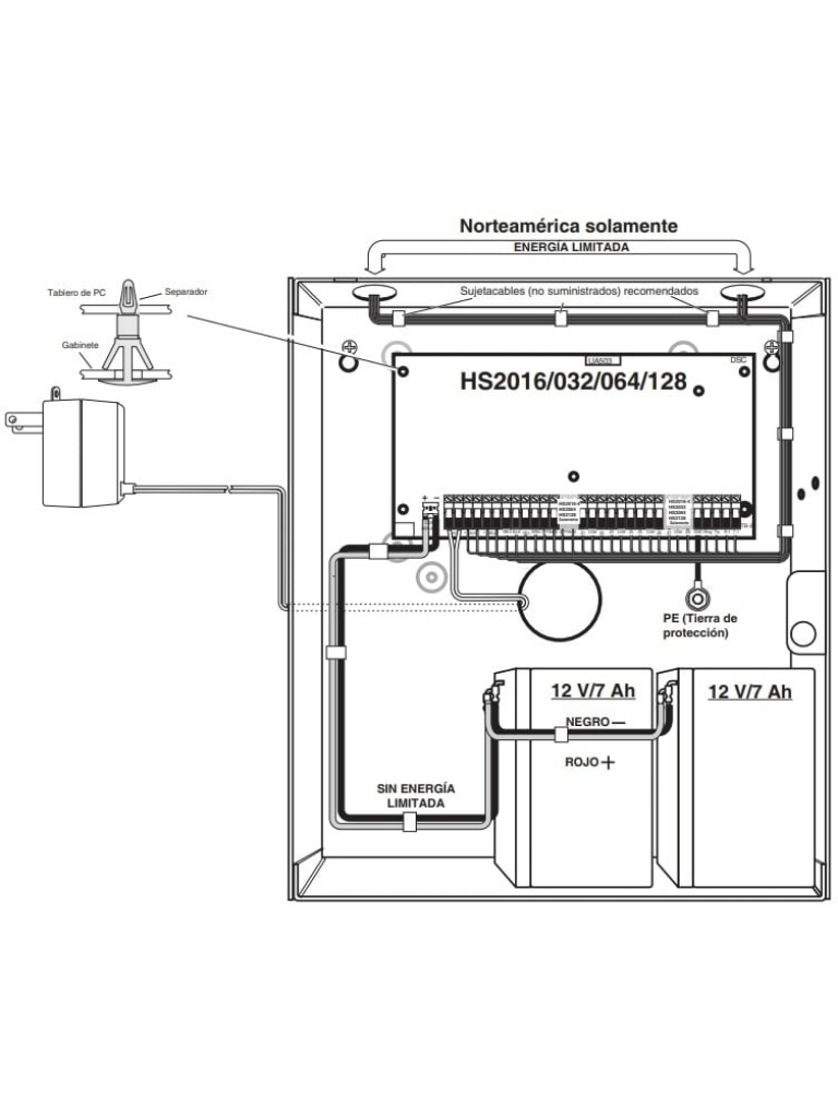 • 4 Postes para sujetar la tarjeta HS2032 con el gabinete.