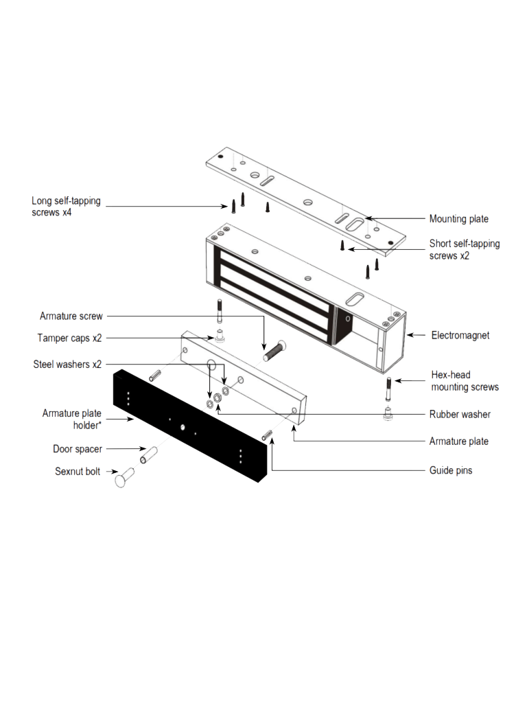 La serie E-941Sx de cerraduras electromagnéticas es la forma ideal de asegurar una puerta contra la entrada no autorizada. Cuando se aplica energía a la cerradura electromagnética, se crea un campo magnético extremadamente fuerte. El electroimán es fuertemente atraído por la placa de armadura de acero que está montada en la puerta asegurada. Una vez que el electroimán está desactivado, la puerta asegurada funcionará normalmente sin ningún magnetismo residual.