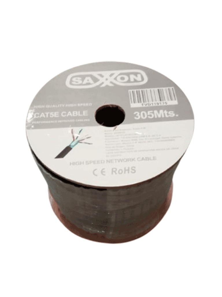 SAXXON OFTPCAT5ECOPE305N – Bobina de Cable FTP Cat5e 100% Cobre/ 305 Metros/ Blindado/ Color Negro/ Uso Exterior/ Ideal para Cableado de Redes de Datos y Video/ Cert ISO9001/ UL / RoSH