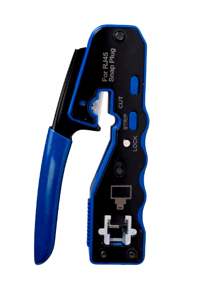 Engarzador RJ45 todo en uno para pelar, engarzar y cortar cables para cables de datos de conductores pares. Ideal para enchufes modulares de 8 posiciones, como conectores CAT5e, CAT6 y CAT6a.