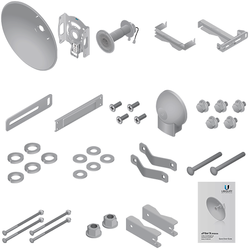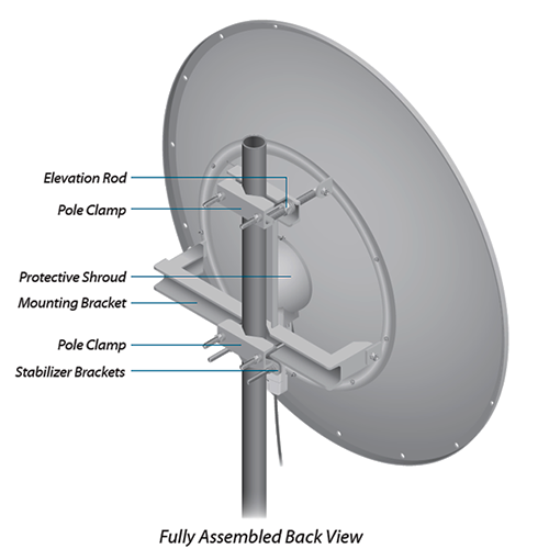 - Montaje: Incluye soporte universal para poste, soporte para radio airFiber y puentes RF resistentes a la intemperie