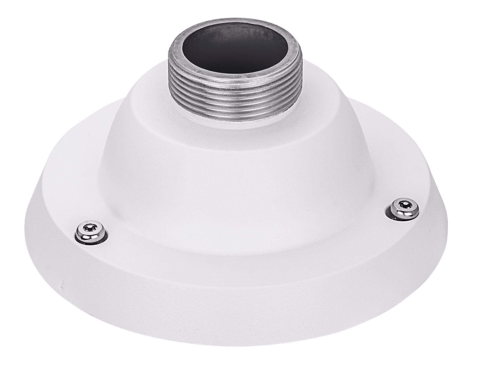 Es un adaptador de montaje en techo diseñado para cámaras PTZ, que permite una instalación segura y estética. Su principal función es proporcionar un soporte robusto, asegurando que las cámaras permanezcan estables y en la posición adecuada para optimizar el campo de visión. Los beneficios incluyen una mejor cobertura de vigilancia, mayor protección contra vandalismo al estar montadas en altura, y un diseño que oculta el cableado, contribuyendo a una apariencia más profesional. Además, facilita la instalación y ajustes de las cámaras según las necesidades específicas de cada entorno, mejorando así la eficacia del sistema de seguridad.