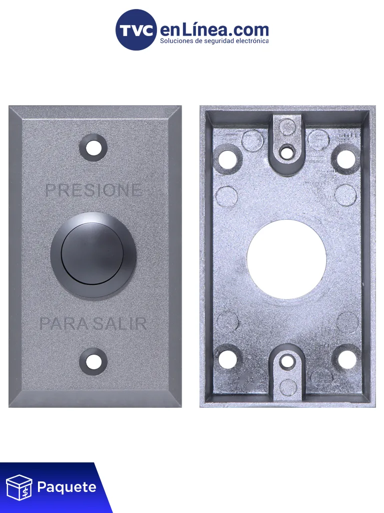 No, el paquete incluye el botón de salida y la caja de montaje metálica, junto con los tornillos para fijar la base a la pared o superficie deseada. Sin embargo, no incluye los tornillos para sujetar el botón a la caja de montaje, que deben ser de tipo milimétrico con medida de 3.8 mm. Tampoco se incluyen los taquetes necesarios para asegurar la base en paredes o superficies.