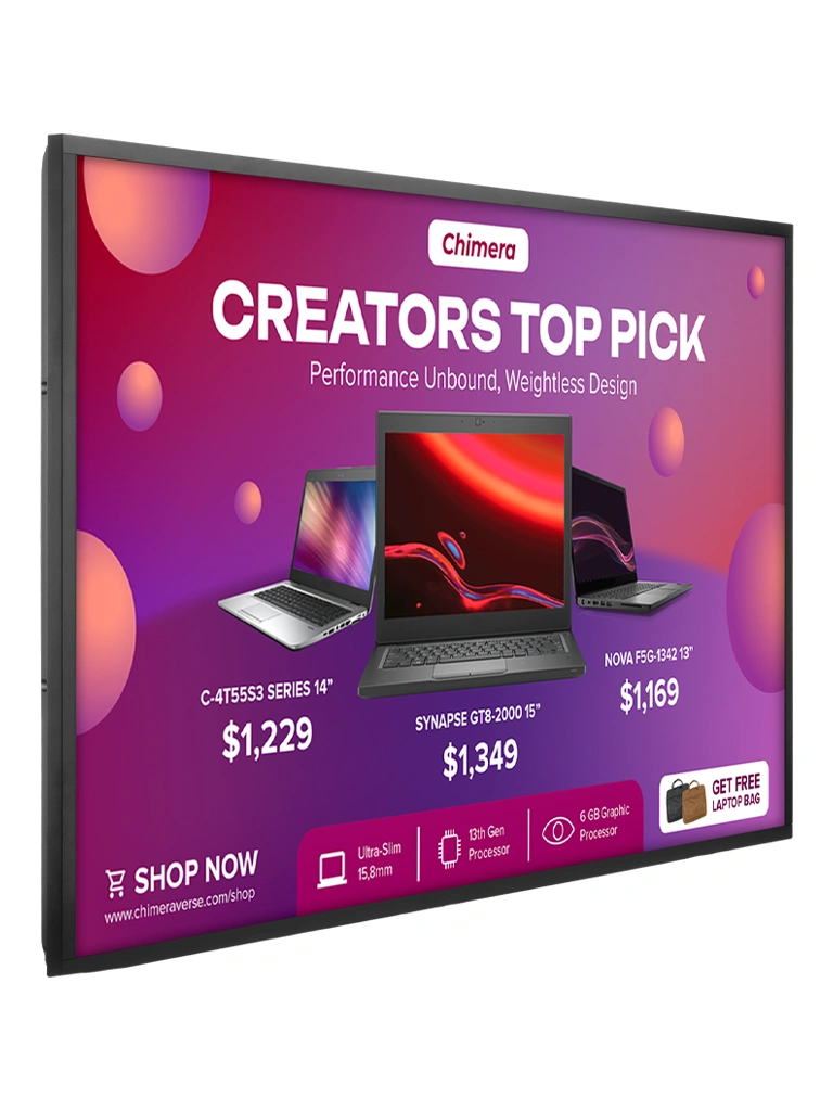 Ideal para supermercados, tiendas retail, salas de espera o recepción empresarial, centros comerciales y exhibiciones digitales en interiores