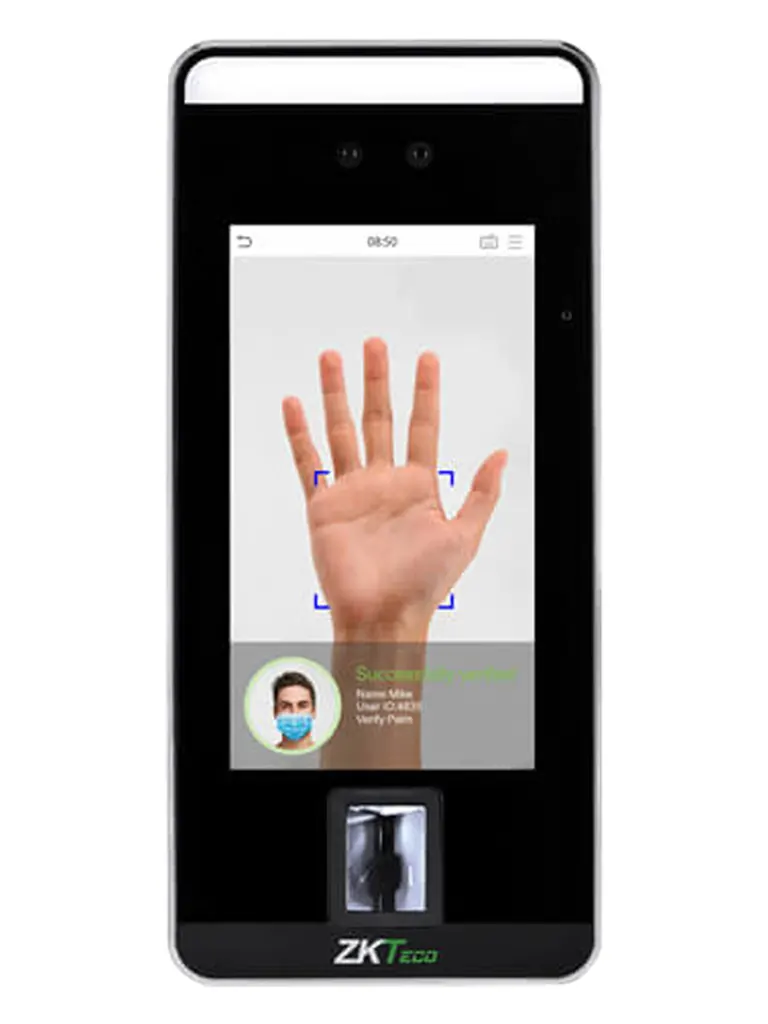 El SpeedFace-V5L [P] WiFi permite la verificación tanto facial como de la palma de la mano, proporcionando un reconocimiento rápido y preciso. Su innovadora tecnología de reconocimiento sin contacto y la identificación individual enmascarada eliminan efectivamente las preocupaciones de higiene, lo que lo convierte en la solución ideal para entornos donde la salud y la seguridad son prioritarias, sin contar la facilidad de instalación por el tipo de conexión por WiFi.