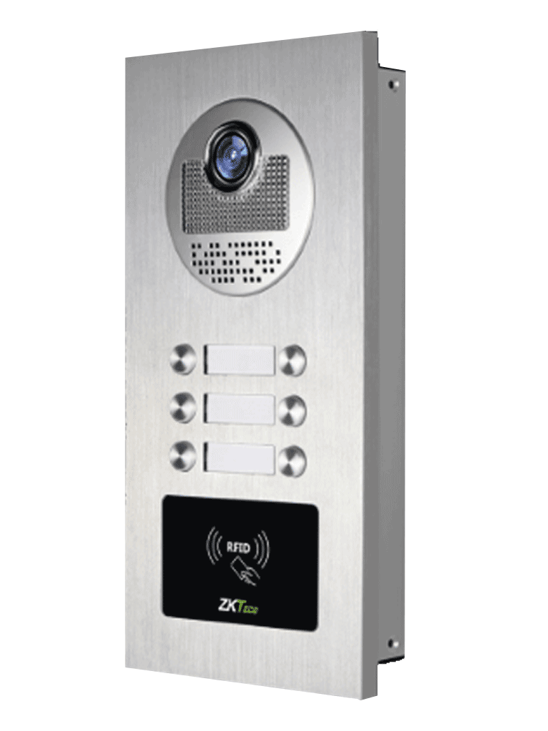 El Video portero VE06A01 es un frente de calle para edificios, permite conectar hasta 6 monitores directamente ( sistema de 4 hilos con conectores plug-and-play simplifica el proceso de instalación) transmite audio, video y cuenta con la función de poder liberar una cerradura eléctrica desde el monitor o mediante una tarjeta ofrece una visión nocturna de forma automática, proporcionando un alto nivel de servicio de vigilancia con mucha seguridad requiere de una fuente de alimentación independiente de 12V se le puede conectar un electroimán, contrachapas, etc. que requieren de un control de acceso alterno.