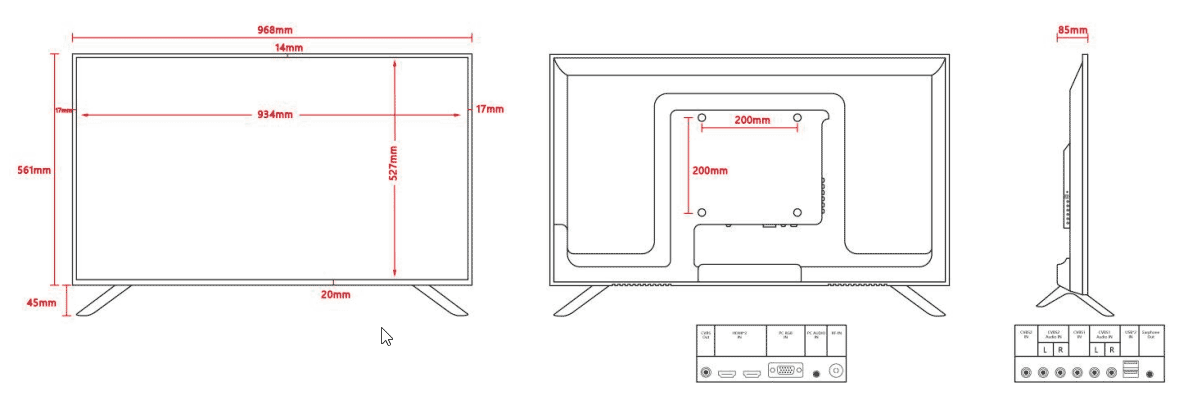 - Entradas de vídeo 2*HDMI, 1*VGA 2*USB, 1*RF, 1*PC 2*Entrada de Audio